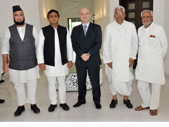 उत्तर प्रदेश के मुख्यमंत्री श्री अखिलेश यादव से आज यहां उनके सरकारी आवास पर क्रोएशिया गणराज्य के राजदूत श्री आमिर मोहर्रमी ने भेंट की। मुलाकात के दौरान प्रदेश व क्रोएशिया के बीच विभिन्न क्षेत्रों में आपसी सहयोग और सम्पर्क बढ़ाने पर विचार-विमर्श किया गया। इस मौके पर विधान सभा अध्यक्ष श्री माता प्रसाद पाण्डेय भी मौजूद थे।