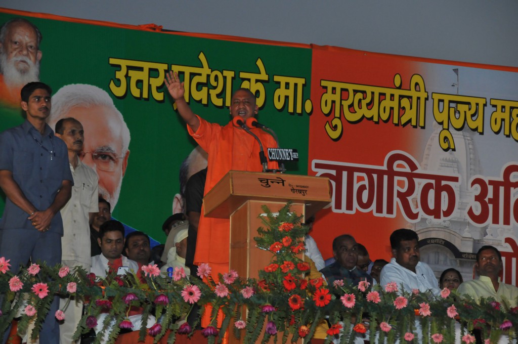 इसके पूर्व, मुख्यमंत्री के गोरखपुर आगमन पर वहां की जनता द्वारा उनका भव्य और ऐतिहासिक स्वागत किया गया। एयरपोर्ट से लेकर मुख्य कार्यक्रम स्थल महाराणा प्रताप इण्टर काॅलेज तक सड़क के दोनों ओर लाखों लोगों ने मुख्यमंत्री का स्वागत और अभिनन्दन किया। उन्होंने जनता को आश्वस्त किया कि परिश्रम और जनसहयोग के आधार पर वे उत्तर प्रदेश के सर्वांगीण विकास के लिए कोई कोर-कसर बाकी नहीं रखेंगे।