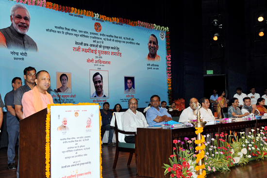 मुख्यमंत्री जी आज यहां लोक भवन में प्रदेश के मेधावी छात्र-छात्राओं के सम्मान समारोह में बोल रहे थे। इस अवसर पर उन्होंने उत्तर प्रदेश माध्यमिक शिक्षा परिषद की हाईस्कूल एवं इण्टरमीडिएट की परीक्षा में प्रथम 10 स्थान पाने वाले 117, आई०सी०एस०ई० संस्था द्वारा संचालित कक्षा 10 व 12 के शीर्ष स्थान प्राप्त करने वाले 19 तथा सी०बी०एस०ई० बोर्ड के कक्षा 12 के 11 मेधावी विद्यार्थियों अर्थात् कुल 147 मेधावी छात्र-छात्राओं को रानी लक्ष्मीबाई पुरस्कार से सम्मानित किया। सभी मेधावी छात्र-छात्राओं को एक-एक लाख रुपये का चेक, एक-एक टैबलेट एवं प्रशस्ति-पत्र दिया गया। इस अवसर पर मेधावी छात्र-छात्राओं के माता-पिता एवं प्रत्येक बोर्ड के प्रथम स्थान प्राप्त करने वाले 7 छात्र-छात्राओं की संस्थाओं के प्रधानाचार्य/प्रधानाचार्या को भी सम्मानित किया गया।7