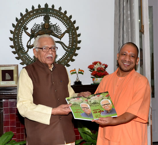 उत्तर प्रदेश के राज्यपाल श्री राम नाईक से आज राजभवन में मुख्यमंत्री योगी आदित्यनाथ ने शिष्टाचारिक भेंट कर राज्यपाल के कार्यकाल के तीन वर्ष पूर्ण होने पर बधाई दी। राज्यपाल ने मुख्यमंत्री योगी आदित्यनाथ को अपने वार्षिक कार्यवृत्त ‘राजभवन में राम नाईक 2016-17’ की प्रथम प्रति भेंट की। राज्यपाल से उप मुख्यमंत्री डाॅ0 दिनेश शर्मा ने भी भेंट कर तीन वर्ष पूर्ण होने पर बधाई दी।