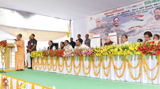 उत्तर प्रदेश के राज्यपाल श्री राम नाईक ने आज कारगिल विजय दिवस के अवसर पर लखनऊ नगर निगम द्वारा ‘कारगिल शहीद स्मृति वाटिका’ में आयोजित कार्यक्रम में मुख्यमंत्री योगी आदित्यनाथ, उप मुख्यमंत्री डाॅ0 दिनेश शर्मा व प्रदेश सरकार के मंत्रीगण के साथ कारगिल शहीदों को श्रद्धांजलि अर्पित की तथा उनके परिजनों को सम्मानित किया। कार्यक्रम में मंत्री श्री सुरेश खन्ना, मंत्री श्री आशुतोष टण्डन, मंत्री डाॅ0 रीता बहुगुणा जोशी, मंत्री श्री बृजेश पाठक, राज्यमंत्री श्रीमती स्वाति सिंह, राज्यमंत्री श्री मोहसिन रज़ा, प्रमुख सचिव नगर विकास श्री मनोज सिंह, नगर आयुक्त श्री उदयराज सिंह, पार्षदगण सहित कारगिल शहीदों के परिजन, स्वतंत्रता संग्राम सेनानी, छात्र-छात्रायें व अन्य गणमान्य नागरिक उपस्थित थे। कार्यक्रम में छात्र-छात्राओं ने देशभक्ति से जुड़े सांस्कृतिक कार्यक्रम भी प्रस्तुत किए।