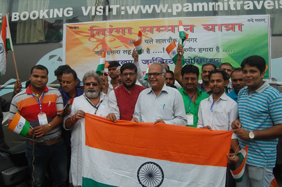 दिल्ली के अमर जवान ज्योति से श्रीनगर (Kashmir) के लाल चैक तक तिरंगा यात्रा में भाग लेने के लिए झाड़खण्ड, बिहार और उत्तर प्रदेश के पत्रकार आज यू.पी. पे्रस क्लब के प्रांगण में अपने पहले पड़ाव के लिए शुक्रवार, 11 अगस्त, 2017 के पूर्वान्ह् में कुछ देर रूके। यह तिरंगा यात्रा इण्डियन फेडरेशन आफ वर्किंग जर्नलिस्ट्स (आइ.एफ.डब्ल्यू.जे.) ने आयोजित किया है। जिसमें विभिन्न प्रदेशों के श्रमजीवी पत्रकार शरीक होंगे।