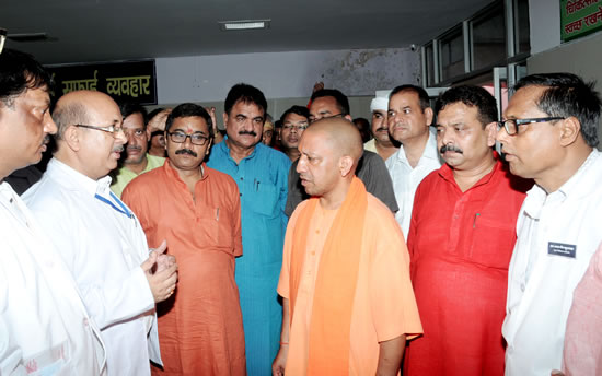 press-10उत्तर प्रदेश के मुख्यमंत्री योगी आदित्यनाथ जी ने अपने दो दिवसीय जनपद वाराणसी दौरे के दूसरे एवं अन्तिम दिन रविवार को पण्डित दीनदयाल उपाध्याय राजकीय चिकित्सालय का औचक निरीक्षण किया। निरीक्षण के दौरान उन्होंने अस्पताल में भर्ती मरीजों से उनका कुशलक्षेम पूछे जाने के दौरान मौके पर मौजूद मुख्य चिकित्सा अधिकारी एवं चिकित्सा अधिकारियों को कड़े निर्देश दिए कि चिकित्सा व्यवस्था में किसी भी स्तर पर लापरवाही कतई नहीं होनी चाहिए।press-113