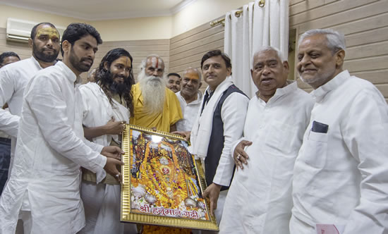 अयोध्या के सुप्रसिद्ध श्री हनुमानगढ़ी मंदिर के महंत श्री कल्याणदास जी ने श्री अखिलेश यादव को हनुमानगढ़ी मंदिर की तस्वीर और अंगवस्त्र देकर सम्मानित किया। उन्होंने श्री हनुमान को नैवेद्य रूप में अर्पित भोग की रबड़ी का प्रसाद भी दिया।