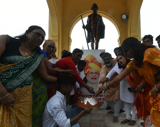 प्रधानमंत्री माननीय नरेन्द्र भाई मोदी जी के 67 वाॅ जन्मदिन लड्डू का केक काटकर उनकी लम्बी आयु होने की कामना की