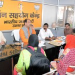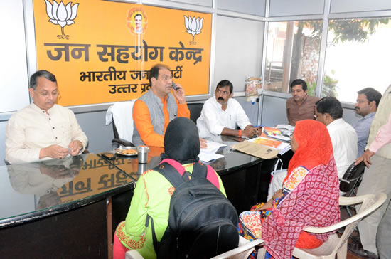 121लखनऊ 20 सितम्बर 2017, भारतीय जनता पार्टी प्रदेश मुख्यालय पर जनसमस्याओं के निराकरण के लिए राज्यमंत्री मोहसिन रजा उपस्थित रहे। जनसहयोग केन्द्र पर आये हुए लोगो की समस्याओं को सुनकर संबंधित अधिकारियों को उसके निस्तारण के लिए आदेश दिये। श्री सिंह ने दोपहर 11 बजे से दोपहर 01 बजे तक जनसमस्याओं का निस्तारण किया। मा0 मंत्री जी के साथ प्रदेश उपाध्यक्ष बाबूराम निषाद एवं प्रदेश मंत्री शंकर गिरी जनसमस्याओं के निराकरण में जुटे रहे।