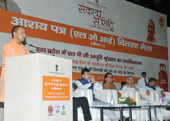 मुख्यमंत्री जी ने यह विचार आज यहां इन्दिरा गांधी प्रतिष्ठान में एल0पी0जी0 वितरकों को आशय पत्र वितरण के लिए आयोजित कार्यक्रम को सम्बोधित करते हुए व्यक्त किया। उन्होंने कहा कि गांवों और दूर-दराज के क्षेत्रों में एल0पी0जी0 उपलब्ध कराने की दिशा में आज का यह कार्यक्रम अत्यन्त महत्वपूर्ण है। प्रधानमंत्री श्री नरेन्द्र मोदी जी उज्ज्वला जैसी योजना को लागू करने के लिए बधाई के पात्र हैं। प्रधानमंत्री जी की सोच ‘सबका साथ सबका विकास’, इस योजना में पूरी तरह से परिलक्षित होती है, क्योंकि इसका लाभ गरीबों, अल्पसंख्यकों, ग्रामीण क्षेत्रों के निवासियों को पूरी तरह से मिल रहा है।