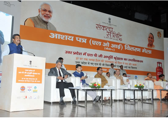 इस अवसर पर श्री धर्मेंद्र प्रधान ने बताया कि भारत के पिछड़े क्षेत्रों में प्रगति की नई लहर चली है। महिलाओं के सशक्तिकरण के साथ उनकी रसोई को धुंआं मुक्त किया जा रहा है। प्रधान मंत्री उज्ज्वला योजना ;पीएमयूवाईद्ध की चर्चा करते हुए श्री प्रधान ने कहा श्यह बीपीएल परिवार की महिलाओं के आँसू पोंछने के लिए एक मिशन है जो कि माननीय प्रधान मंत्री द्वारा बालिया में शुरू किया गया था जिसने आज 3 करोड़ से अधिक बीपीएल परिवारों के जीवन को खुशहाली प्रदान की हैष् श्री नरेंद्र मोदी के नेतृत्व में इस अभूतपूर्व योजना को लागू किया जा रहा है ताकि लाखों करोड़ों आर्थिक दृष्टि से वंचित परिवारों को स्वच्छ और सुरक्षित एलपीजी ईंधन उपलब्ध करवाया जा सके । तीनों सार्वजनिक क्षेत्र की तेल विपणन कंपनियां ;ओएमसीद्ध अर्थात् इंडियनऑयलए एचपीसीएल और बीपीसीएल इस योजना के क्रियान्वयन में महत्वपूर्ण भूमिका निभा रहे हैं । 1 मई 2016 को बलियाए उत्तर प्रदेश में पीएमयूवाई योजना के शुभारंभ के बाद से उत्तर प्रदेश में 62 लाख नए एलपीजी कनेक्शन जारी किए गए हैं और एलपीजी कवरेज 47ण्7: से बढ़कर 77ण्1: हो गया है । पूरे देश में एलपीजी उपभोक्ता आधार में इस तरह के बड़े पैमाने पर हुए विस्तार से आपूर्ति और वितरण के बुनियादी ढांचे में भी वृद्धि की जा रही है । इस बढ़ी हुई मांग को पूरा करने के लिए तेल विपणन कंपनियां अपने एलपीजी बॉटलिंग क्षमता का विस्तार कर रही हैं और अपने वितरण नेटवर्क को भी बढ़ा रही हैं द्य इस दिशा में गोरखपुरए गोंडा और वाराणसी में 3 नए एलपीजी बॉटलिंग प्लांट स्थापित करने की योजना बनाई गई है जिसमें कुल अनुमानित निवेश 463 करोड़ रूपये है द्य इसके अलावा त्रिशुंडीए उन्नाव और गोरखपुर में मौजूदा बॉटलिंग प्लांटों की क्षमता में वृद्धि के लिए लगभग 260 करोड़ रुपये का अनुमानित निवेश भी किया जाएगा । इसके अतिरिक्त कांडला से गोरखपुर एलपीजी प्रोडक्ट पाइपलाइन का भी निर्माण किया जा रहा है जो उत्तर प्रदेश के कई शहरों से गुजरेगी द्य श्री प्रधान ने बताया कि श्पिछले 3 वर्षों में हमने 1000 नए वितरकों को नियुक्त किया है और आने वाले वर्ष में 1000 अतिरिक्त वितरकों को नियुक्त करने की योजना है।ष् श्री प्रधान ने आगे बताया कि उत्तर प्रदेश में इन आगामी परियोजनाओं के कारण नए एलपीजी बॉटलिंग प्लांटए सिलेंडर विनिर्माणए स्टोव मैन्युफैक्चरिंगए परिवहन और आपूर्ति श्रृंखला में नए रोजगार के अवसर पैदा होंगे ।