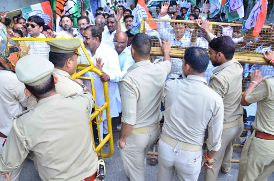 श्री मिश्रा ने बताया कि रास्ते में रोके जाने पर कांग्रेसजनों को सम्बोधित करते हुए प्रदेश कांग्रेस के प्रवक्ता वीरेन्द्र मदान ने कहा कि आज जिस प्रकार वाराणसी में विश्व प्रसिद्ध शिक्षा के केन्द्र में छात्राओं का उत्पीड़न किया जा रहा है, उन पर लाठियां बरसायी जा रही हैं पुलिस द्वारा फायरिंग की जा रही है, इससे पूरे विश्व में भारत की छवि धूमिल हो रही है। एक तरफ केन्द्र और प्रदेश सरकार महिला सुरक्षा की बात करती है बेटी पढ़ाओ-बेटी बचाओ का नारा दिया जा रहा है, कन्या भ्रूण हत्या रोकने के लिए थाने खोलने की बात की जा रही है वहीं प्रधानमंत्री के संसदीय क्षेत्र में जिस प्रकार छात्राओं के साथ अमानवीय घटना हुई है निन्दनीय है।