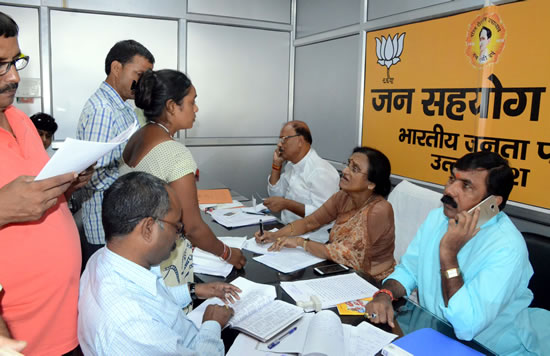 05-4लखनऊ 06 अक्टूबर 2017, भारतीय जनता पार्टी प्रदेश मुख्यालय पर जनसमस्याओं का निराकरण कैबिनेट मंत्री श्रीमती रीता बहुगुणा जोशी ने किया। ज्यादा शिकायते पूर्व शासन काल में जमीनों पर कब्जे को लेकर थी। जिसको देखकर यह लगता है कि कोई गांव, ब्लाक, तहसील ऐसी नही है जहां पूर्ववर्ती सरकार के लोगों द्वारा जमीनों पर कब्जे न किये गये हो और गरीबों को प्रताड़ित न किया गया हो।