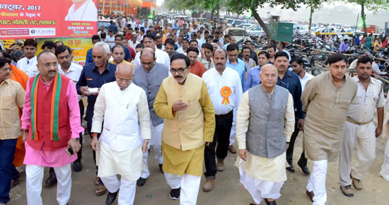 प्रदेश अध्यक्ष डाॅ0 महेन्द्र नाथ पाण्डेय के साथ केन्द्रीय वित्त राज्यमंत्री शिव प्रताप शुक्ला, कृषि मंत्री सूर्य प्रताप शाही, भाजपा प्रदेश मुख्यालय प्रभारी भारत दीक्षित, सांसद जगदम्बिका पाल, विधानसभा सचिव प्रदीप दुबे, जगदीश चन्द्रा, विराज सागर आदि प्रमुख रूप से उपस्थित रहे।