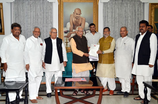 समाजवादी पार्टी के प्रतिनिधिमण्डल में नेता विरोधी दल विधानसभा श्री रामगोविन्द चौधरी, नेता प्रतिपक्ष विधान परिषद श्री अहमद हसन, प्रदेश अध्यक्ष श्री नरेश उत्तम पटेल, पूर्व मंत्री श्री राजेंद्र चौधरी, तथा डा0 असीम यादव एवं डा0 राजपाल कश्यप, (एमएलसी) शामिल थे।