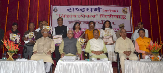 राज्यपाल ने राष्ट्रधर्म के सिंहावलोकन विशेषांक का लोकार्पण किया