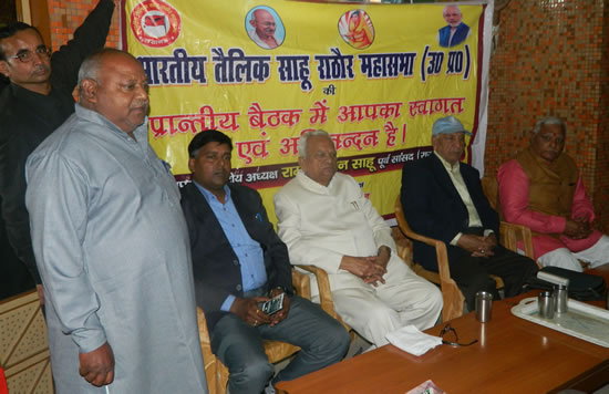 pc-26लखनऊ,26 नवम्बर। भारतीय तैलिक साहू राठौर महासभा के राष्ट्रीय अध्यक्ष ,पूर्व सांसद रामनारायण साहू की अध्यक्षता में मासिक बैठक शुभम सिनेमा हाल में सम्पन्न हुई। इस बैठक को सम्बोधित करते हुए राष्ट्रीय अध्यक्ष श्री राम नारायण साहू ने कहा कि महासभा का अगला राष्ट्रीय सम्मेलन चैन्नई में आयोजित होगा। महासभा 24 दिसम्बर को स्वाजातीय मेधावी का सम्मान समारोह आयोजित करेगी। इसके लिए फिलहाल पात्रता वर्ष 2017 में हाईस्कूल एवं इन्टर मीडियट में 70 प्रतिशत से अधिक अंक पाने वाले स्वाजातीय छात्र छात्राओं को शामिल किया गया है। उन्होंने कहा कि उन्होंने कहाकि कि निकाय चुनाव में विजयी होने वाले स्वाजातीय बन्धुओं का राजधानी में सम्मान किया जाएगा। उन्होंने कहा कि अतिशीघ्र महासभा कई और सक्रिय सदस्यों को जिम्मेदारी सौपेगी और महासभा की इकाईयाॅ ब्लाक स्तर पर बनाई जाएगी।