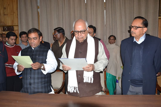उत्तर प्रदेश विधान सभा के मा0 अध्यक्ष श्री हृदय नारायण दीक्षित ने आज दिनांक 29-12-2017 को राजर्षि पुरूषोत्तम दास टण्डन हॉल, विधान भवन में कानपुर देहात जिले के सिकन्दरा विधान सभा निर्वाचन क्षेत्र सं0-207 से उपचुनाव में नव-निर्वाचित भा0ज0पा0 विधायक श्री अजीत सिंह पाल को विधान सभा की सदस्यता की शपथ दिलायी।