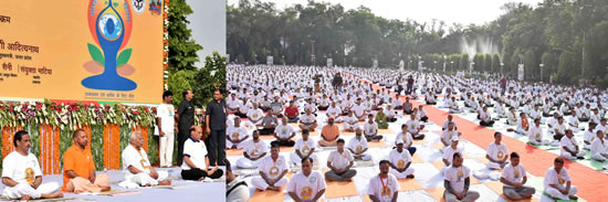 राज्यपाल, केन्द्रीय गृह मंत्री, मुख्यमंत्री सहित विशिष्टजनों ने किया योग