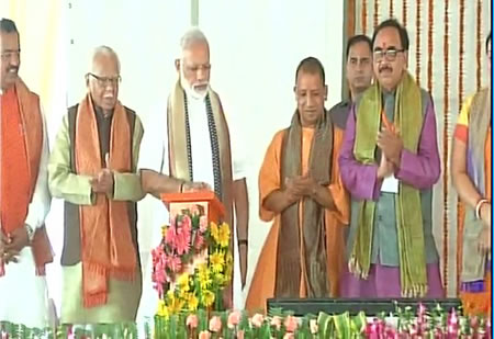 प्रधानमंत्री नरेंद्र मोदी ने कहा कि आज उत्तर प्रदेश के विकास में एक नया अध्याय जुडने की शुरूआत हुई है। पूर्वी भारत में, पूर्वी उत्तर प्रदेश के एक बडे क्षेत्र में विकास की एक नई गंगा बहेगी। यह तो गंगा पूर्वांचल एक्सप्रेस-वे के तौर पर मिलने जा रही है। उत्तर प्रदेश प्रदेश का तेज गति से विकास हो, जो इलाके पिछड़े हैं उन्हें बराबर लाया जाए, यह उत्तर प्रदेश की जनता का फैसला है। हम तो सेवक हैं। उत्तर प्रदेश की जनता ने भाजपा को बड़ी जिम्मदारी दी। जिस तरह से योगी आदित्यनाथ जी ने कमान संभाल कार्य किया है, वह सराहनीय है। यहां अपराध पर नियंत्रण लगाकर भ्रषटाचार पर अंकुश लगाकर योगी आदित्यनाथ ने बड़ा निवेश लाने के लिए बड़ा काम किया है। पहले के दस वर्षों में जिस तरह की प्रदेश की पहचान बन गई थी, वह बदलने लगी है। जनता का पैसा जनता के लिए खर्च होने लगा है। नई कार्य संस्कृति उत्तर प्रदेश को विकास की नई ऊंचाई ले जाएगी। प्रधानमंत्री मोदी ने कहा कि पूर्वांचल एक्सप्रेस-वे विकास की नई ऊंचाई देगा। पूर्वांचल एक्सप्रेस-वे से लगने वाले गांवों की तस्वीर बदलने वाली है। एक्सप्रेस-वे से दिल्ली से गाजीपुर की दूरी कई घंटे कम हो जाएगी। जाम तथा पेट्रोलियम का नुकसान पूर्वांचल एक्सप्रेस-वे के बनने से बीते कल की बात हो जाएगी। कम से कम समय में कृषि उत्पाद दिल्ली पहुंच जाएगा। यह तो इंडस्ट्रियल कॉरीडोर के रूप में विकसित जाएगा इससे पर्यटन में भी इजाफा होगा। युवाओं के लिए रोजगार के नए अवसर भी उपलब्ध होंगे। भाजपा की सरकार ने बुंदेलखंड में भी ऐसे ही एक्सप्रेस-वे बनाने का फैसला किया है। 21 वी सदी में विकास की बुनियादी कनेक्टिविटी होती है। गरीब, किसान के जीवन स्तर को ऊपर उठाने का प्रयास चल रहा है। उत्तर प्रदेश में नेशनल हाइवे का संजाल उत्तर प्रदेश में दोगुना हो गया है। प्रधानमंत्री मोदी ने कहा कि आजादी के बाद जितना काम हुआ उतना तो भाजपा ने सिर्फ चार वर्ष में करके दिखाया है। उत्तर प्रदेश में तो योगी आदित्यनाथ की सरकार बनने के बाद विकास की गति और बढ़ गई है। अब प्रदेश में हाईवे ही नहीं, मोटरवे और एयरवे पर भी काम तेजी से चल रहा है। हवाई चप्पल पहनने वाला भी हवाई जहाज में उड सके, इसके लिए सरकार उड़ान योजना को तेजी से बढ़ा रही है। इसी योजना के तहत उत्तर प्रदेश में 12 एयर पोर्ट विकसित किया जा रहा है। उन्होंने कहा कि मोदी हो योगी, आप ही लोग हमारा परिवार हैं। आपके सपने हमारे सपने हैं। अब जब उड़ान योजना के तहत किरायों की बात आई तो सुश्चित किया गया कि एक घंटे के सफर के लिए ढाई हजार से ज्यादा खर्च नहीं करना पड़े। पिछले वर्ष ट्रेन के एसी में सफर से ज्यादा हवाई जहाज में लोगों ने सफर किया।