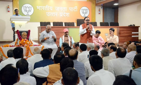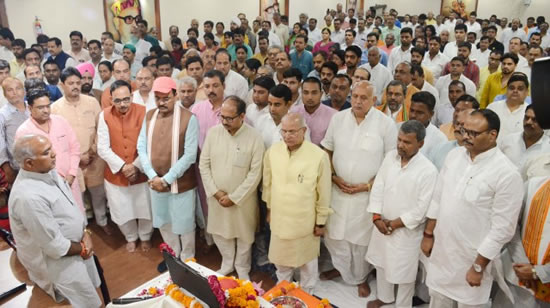 501लखनऊ 16 जुलाई 2018, भारतीय जनता पार्टी के राष्ट्रीय प्रशिक्षण प्रमुख एवं आजीवन सहयोग निधि के राष्ट्रीय प्रमुख सहित विभिन्न संगठनात्मक दायित्वों का निर्वहन कर चुके स्व. रामप्यारे पाण्डेय जी को श्रद्धाजंलि अर्पित करने के लिए आज पार्टी मुख्यालय पर श्रद्धांजलि सभा का आयोजन किया गया। देर शाम स्व. रामप्यारे पाण्डेय जी के अस्थि कलश के पार्टी कार्यालय पहुंचते ही कार्यकर्ताओं के अश्रु छलक पडे़। शोकसभा में पार्टी के प्रदेश अध्यक्ष डा. महेन्द्र नाथ पाण्डेय, उपमुख्यमंत्री केशव प्रसाद मौर्य, प्रदेश महामंत्री (संगठन) सुनील बंसल सहित बड़ी संख्या में राज्य सरकार के मंत्री, पार्टी के पदाधिकारी व कार्यकर्ताओं ने कृतज्ञ श्रद्धासुमन अर्पित कर उन्हें श्रद्धाजंलि दी।27