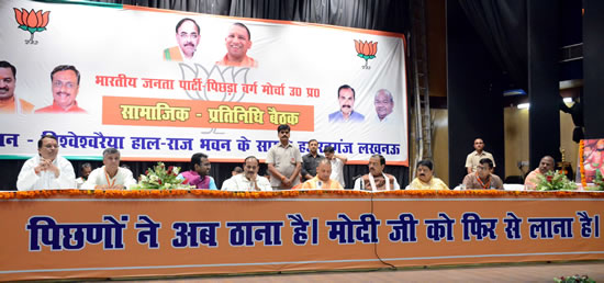 इस अवसर पर पिछड़वर्ग मोर्चा के राष्ट्रीय अध्यक्ष एवं प्रदेश के कैबिनेट मंत्री दारा सिंह चैहान, पिछडा वर्ग आयोग वित्त निगम के अध्यक्ष बाबू राम निषाद, प्रदेश महामंत्री एवं पिछडा वर्ग मोर्चा के प्रभारी विजय बहादुर पाठक, सहप्रभारी ब्रज बहादुर जी, कार्यक्रम संयोजक व प्रदेश मंत्री धर्मवीर प्रजापति, विधायक ब्रजेश प्रजापति सहित कई अन्य प्रमुख लोग उपस्थित थे। संचालन प्रदेश कार्यसमिति सदस्य ओमप्रकाश गोला ने किया।