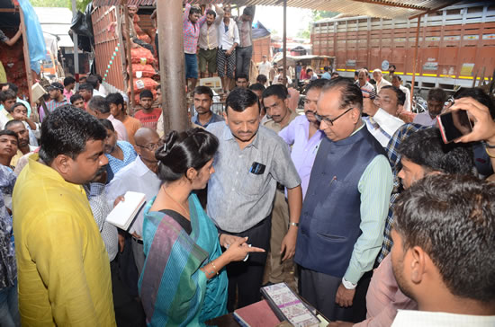 श्रीमती सिंह ने मंडी स्थंल में कई दुकानों का निरीक्षण किया। निरीक्षण के दौरान उन्हें मंडी में व्याप्तं भारी अनियमितता देखने को मिली। व्यापारियों से दुकान का लाइसेंस एवं वाहनों से आने-जाने वाले माल का ब्यौरा मांगने पर सही लेखा-जोखा नहीं मिला। श्रीमती सिंह ने व्यापारियों से 6 आर दिखाने को कहा। परन्तुर व्यापारियों ने 6 आर दिखाने में असमर्थता जतायी। इस पर उन्होंने मौके पर मौजूद मंडी सचिव डी.के. वर्मा को कडी फटकार लगायी और कहा कि यह सरकार के पैसे की चोरी है। कुछ लोगों ने अवैध वसूली का भी आरोप लगाया। श्रीमती सिंह ने सचिव डीके वर्मा को हिदायत देते हुये कहा कि आपको काम की तनख्वांह दी जाती है, वसूली की नहीं। मंडी में व्याप्त अनियमितता एवं गडबडी देख श्रीमती सिंह ने कडी कार्यवाही के आदेश दिये एवं कहा कि दोषी पाये जाने वाले व्यक्तियों के खिलाफ कठोर कार्यवाही की जायेगी। dsc_2188