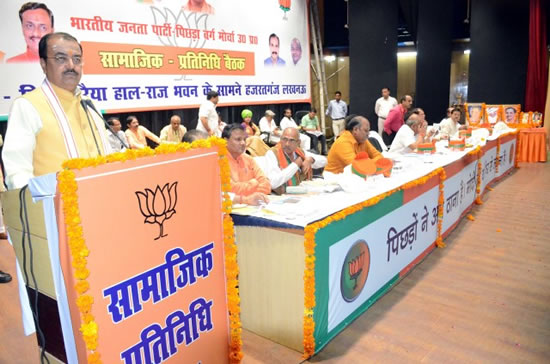 इस अवसर पर भाजपा पिछड़ा वर्ग मोर्चा के प्रदेश अध्यक्ष राजेश वर्मा, पिछड़ा वर्ग वित्त विकास निगम के अध्यक्ष बाबू राम निषाद, समाज कल्याण निर्माण निगम के अध्यक्ष बीएल वर्मा, पिछड़ा वर्ग मोर्चा के सह प्रभारी ब्रज बहादुर, पूर्व एमएलसी रामचन्दर प्रधान, हीरा ठाकुर सहित कई अन्य प्रमुख लोगों ने भी बैठक को संबोधित किया।