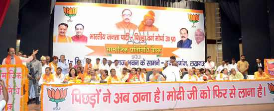 लखनऊ 02 सितम्बर 2018 भारतीय जनता पार्टी उत्तर प्रदेश पिछडा वर्ग मोर्चा के तत्वाधान में ‘‘सामाजिक प्रतिनिधि बैठक‘‘ में आज साहू-राठौर समाज को सम्बोधित करते हुए मुख्यअतिथि के रूप में उत्तर प्रदेश सरकार के उपमुख्यमंत्री केशव प्रसाद मौर्य ने कहा कि आज तेली-राठौर समाज को सम्बोधित करते हुए कहा कि यह सरकार आपकी सरकार है आप ने ही इस सरकार को बनाया है। 2014 में देश ने एक पिछडे़ समाज से आने वाले एक चाय बेचने वाले को जो हम सब के बीच बेहद गरीब परिवार से आये है ऐसे कर्म योगी नरेन्द्र मोदी को देश का प्रधानमंत्री बनाया है। जो गांव, गरीब, किसान, मजदूर, नौजवान को लेकर भारत के निर्माण में निरन्तर लगे हुए हैं। 01