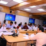 सभागार में जिले, मंडल एवं विभागीय अधिकारियों के साथ समीक्षा कर रहे थे।