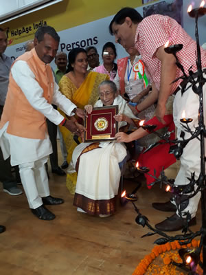 वरिष्ठजन दिवस के अवसर पर श्रीमती रानी स्वरुप कुमारी बख्शी दीदी को शतायु सम्मान से सम्मानित किया