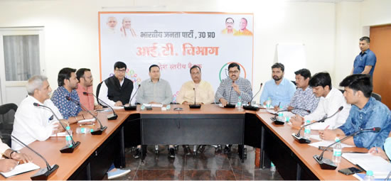 बैठक में प्रदेश संयोजक संजय राय, राष्ट्रीय संयोजक अमित मालवीय जी के साथ सभी क्षेत्रीय संयोजक सह संयोजक रहे। डा. दिनेश शर्मा ने कहा पार्टी कार्यकर्ताओं को संयमित भाषा का उपयोग करते हुए विरोधियों को जवाब सरकार ओर पार्टी की उपलब्धियाँ को गिनकर देना चाहिए। भाजपा आई टी टीम बूथ स्तर तक है और हमें 163000 बूथों तक एक सशक्त आई.टी. टीम तैयार है।