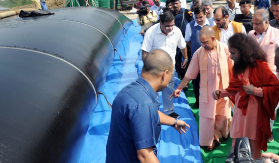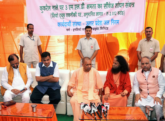 मुख्यमंत्री जी ने कहा कि प्रदेश सरकार प्रधानमंत्री श्री नरेन्द्र मोदी जी की महत्वाकांक्षी योजना ‘नमामि गंगे’ कार्यक्रम के लिए सक्रिय रूप से कार्य कर रही है। प्रत्येक नागरिक का दायित्व है कि गंगा जी की अविरलता को बनाए रखे। उन्होंने कहा कि गंगा जी में गिरने वाले सभी नालों इत्यादि का 15 दिसम्बर, 2018 से पूर्व समाधान किया जाए। अधिकारियों को यह सुनिश्चित करने के निर्देश दिए गए हैं कि इस तिथि के उपरान्त गंगा जी में किसी भी प्रकार की गन्दगी नहीं गिरेगी। उन्होंने कहा कि नाले के पानी को शोधित करने के लिए कई तकनीक हंै। औद्योगिक इकाइयों से निकलने वाले दूषित जल के शोधन के लिए जहां एस0टी0पी0 लगाकर पानी को शोधित किया जा रहा है, वहीं एक नयी तकनीक जियो ट्यूब द्वारा रेमिडिएशन का कार्य किया जा रहा है। उन्होंने कहा कि गंगा व यमुना में लगभग 40 स्थानों पर गिरने वाले नालों के दूषित जल के शोधन के लिए जियो ट्यूब को लगाया जाएगा।001