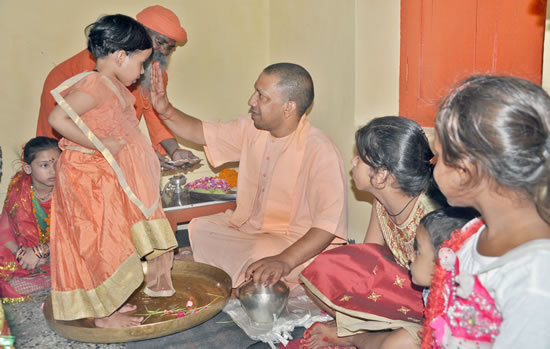 14शारदीय नवरात्र के नवमी को कुमारी कन्या पूजन के उपरान्त उक्त बातें गोरक्षपीठाधीश्वर महन्त योगी आदित्यनाथ जी महाराज, मा0 मुख्यमंत्री, उत्तर प्रदेश ने कहीं। उन्होंने कहा कि सनातन हिन्दू धर्म में कुमारी कन्याओं का पूजन शक्ति की अधिष्ठात्री देवी मॉ भगवती के प्रति श्रद्धा निवेदित करने का एक अवसर तो होता ही है साथ ही ज्ञान, शक्ति, ऐश्वर्य आदि की कामनाओं के लिए भी कुमारी कन्या का पूजन शास्त्र विहित है। इसमें किसी प्रकार का कोई भेदभाव नहीं है। चारो वर्णो की कन्याओं का पूजन जब हिन्दू धर्मावलम्बी सम्पन्न करता है तो वह चारो वर्णो की एकता से उत्पन्न शक्ति का प्रतीक भी बनता है। नवरात्रि का अनुष्ठान आध्यात्मिक शक्ति संचय के साथ-साथ सामाजिक एकता के माध्यम से राष्ट्रीय एकता को मजबूत करने का पर्व है। 34
