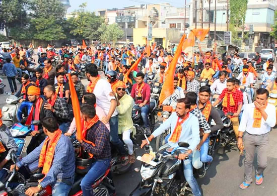 संघ कार्यकर्ताओं की ‘अयोध्या चलो’ बाईक रैली से भगवामय हुई राजधानी