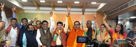 लखनऊ 25 फरवरी 2019, भारतीय जनता पार्टी के प्रदेश अध्यक्ष डा0 महेन्द्र नाथ पाण्डेय ने आज समाजवादी पार्टी व बहुजन समाज पार्टी के कई प्रमुख नेताओं को भाजपा की सदस्यता ग्रहण कराई। पार्टी के राज्य मुख्यालय पर आज बसपा के वरिष्ठ नेता व पूर्व राज्यमंत्री मुकुल उपाध्याय (हाथरस), पूर्व राज्यमंत्री रामहेत भारती सीतापुर व जोनल काआर्डिनेटर आगरा क्षेत्र बसपा धु्रव पराशन, सपा की पूर्व विधायक दर्जा प्राप्त राज्यमंत्री श्रीमती बीना भारद्वाज (रामपुर) व अखिल भारतीय आगंनबाडी कर्मचारी महासंघ की अध्यक्ष श्रीमती सावित्री चैधरी (बुलन्दशहर) व सामाजिक कार्यकर्ता शोमिल शर्मा कानपुर ने अपने सैकड़ो समर्थकों के साथ भाजपा की सदस्यता ग्रहण की।photo-12