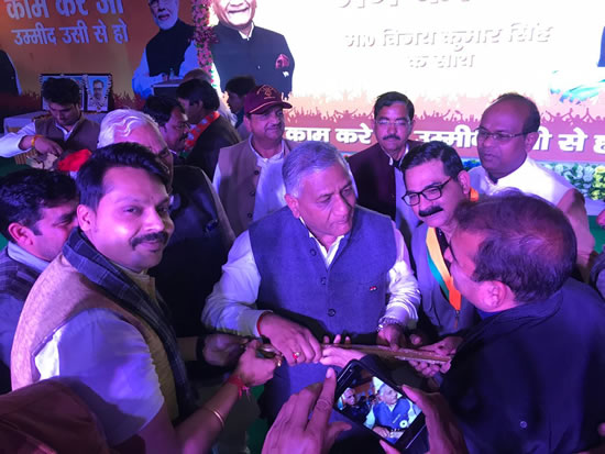 भारत के मन की बात से सैनिकों के मन की बात जोड़ते हुए जनरल वीके सिंह बुलंदशहर नगर के रविन्द्र नाट्यशाला नुमाइश पंडाल में सैनिक के बीच पहुंचे। भारत सरकार के विदेश राज्यमंत्री माननीय जनरल वीके सिंह ने कहा कि हमारे देश के सैनिक देश के लिए लड़ते है और देश को गौरवान्वित करते है। मोदी सरकार ने सैनिकों के सम्मान में युद्ध स्मारक का निर्माण करके प्रत्येक भारतवासी को गौरवान्वित किया है। सैनिको की सुरक्षा के लिए भाजपा सरकार कटिबद्ध है। भारत के स्वाभिमान के साथ जो भी खिलवाड़ करेंगा उसको भारत माकूल जबाव देगा। यह सब आपकी की द्वारा चुनी गई मोदी सरकार की दृढ़ इच्छा शक्ति के कारण सम्भव हुआ। सैनिकों के लिए वन रेंक वन पेंशन से जहां एक ओर सैनिकों की वर्षो से चली आ रही मांग को पूरा किया है, वहीं युद्ध स्मारक बनाकर सच्चे अर्थो में सैनिका का सम्मान किया है।man-ke-baat