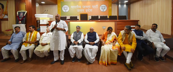 लखनऊ 18 मार्च 2019, भारतीय जनता पार्टी के राज्य मुख्यालय पर आयोजित शोक सभा में गोवा के मुख्यमंत्री मनोहर पर्रिकर को पार्टी पदाधिकारियों व कार्यकर्ताओं ने 2 मिनट का मौन रखकर श्रद्धांजलि अर्पित की। पार्टी के प्रदेश महामंत्री एवं सदस्य विधान परिषद विद्यासागर सोनकर ने मनोहर पर्रिकर को श्रद्धांजलि अर्पित करते हुए कहा कि उनकी सहजता, सरलता और स्वीकार्यता की प्रशंसा उनके राजनैतिक विरोधी भी करते थे। स्वर्गीय पर्रिकर की पहचान एक निर्भीक, निडर, ईमानदार और कुशलतापूर्वक प्रशासनिक निर्णय लेने वाले मुख्यमंत्री के रूप में थी। स्वर्गीय पर्रिकर जी सादगी, सरलता, कर्मठता और वैचारिक प्रतिबद्धता के प्रतीक थे। उनका प्रयाण देश के लिए अपूर्णनीय क्षति है। हम सब ईश्वर से उनकी आत्मा की शांति की प्रार्थना करते है और परिवार को दुख के इन क्षणों में शक्ति प्रदान करने की ईश्वर से प्रार्थना करते है।29